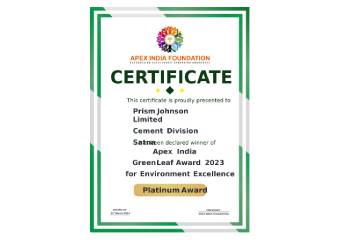 Received ISO 22000:2005 Certification Food and Safety in May 2013. Prism Cement received a nod from the National Accreditation Board for Testing and Calibration Laboratories (NABL) for Testing Lab