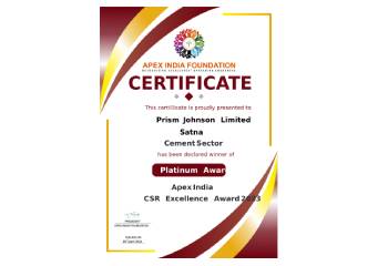 Platinum Award for Excellence in CSR in the Cement Sector at Apex India Foundation