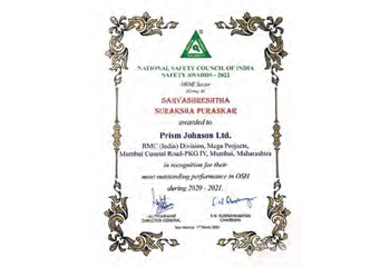Sarvashreshta Suraksha Puraskar from the National Safety Council of India, Safety Awards for the Mumbai Coastal Road project